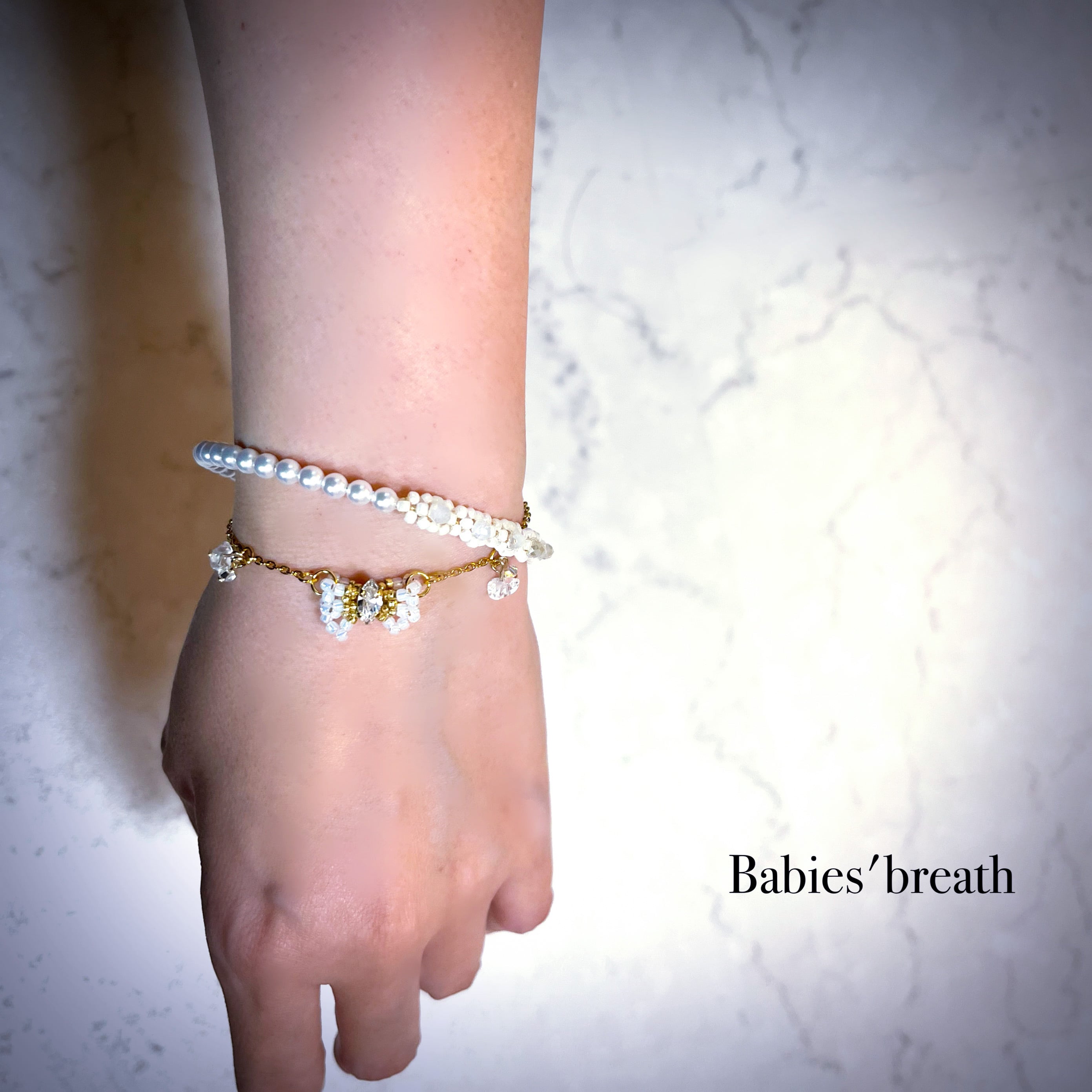 レースビーズのフープピアス・イヤリングと合わせるとさらに可愛い細身のバングルです。