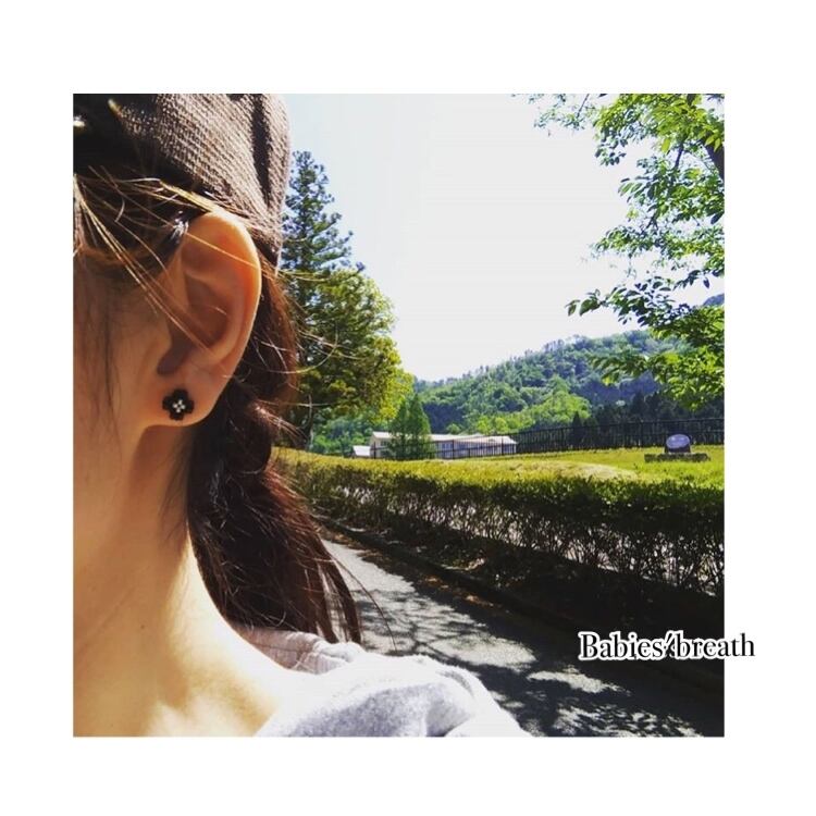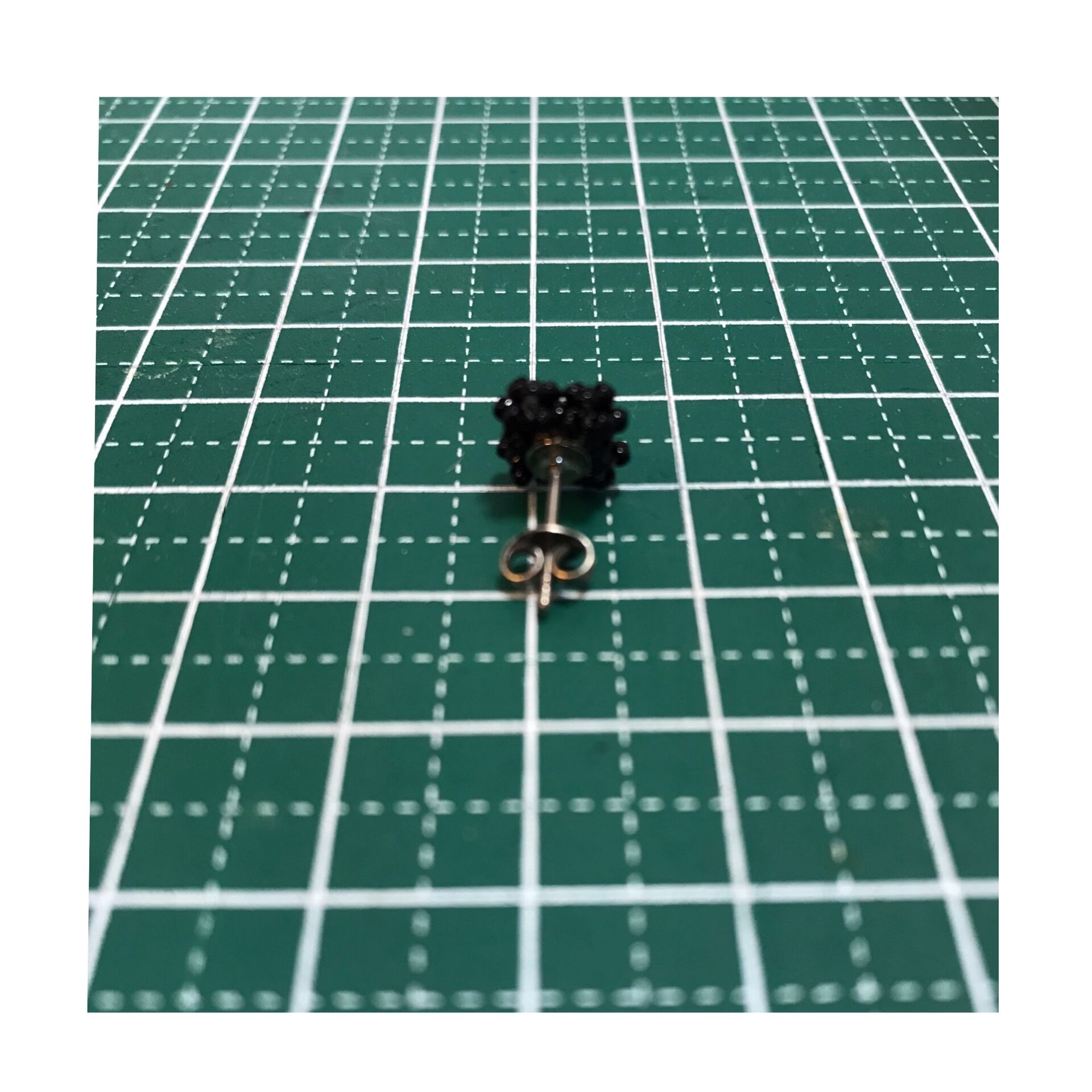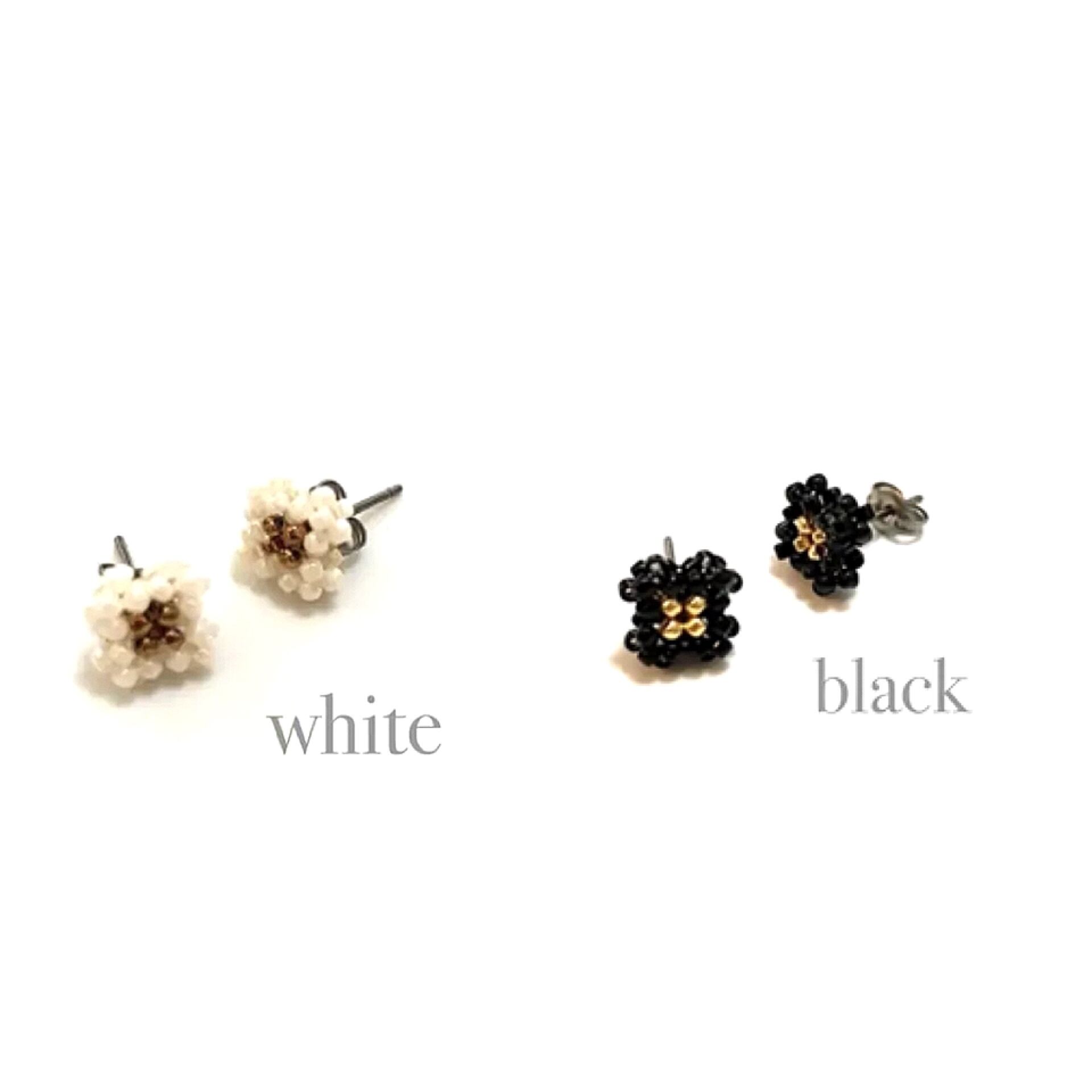 特小ビーズという市販されてる中で最も小さなビーズをお花の形に編んだスタッドピアスです。(チタン)